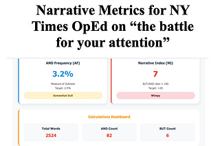 The NY Times published a 2524 word OpEd with dull narrative metrics (3.2%/7) about the need to not be dull in today’s “attention economy." Kinda funny.