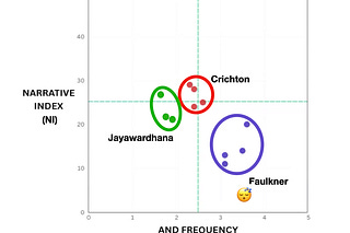 The “Narrative Fingerprint” for Two Novelists: Crichton vs Faulkner - ABT Kindred Spirits Group #35